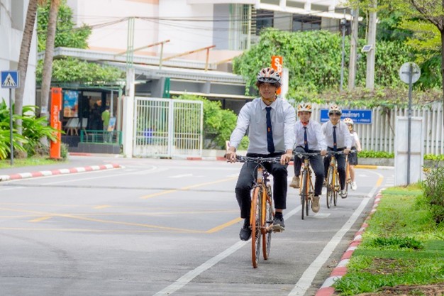 KMUTT actively supports and encourages the use of bicycles for all activities on campus. The university promotes cycling as a sustainable and healthy mode of transportation, not only for students and staff but also for visitors. To facilitate this, KMUTT encourages visitors to use bicycles during their time at the university, providing convenient access to bicycle rentals and dedicated bike paths. This initiative helps reduce the environmental impact of transportation while fostering a more eco-friendly and active campus culture.
