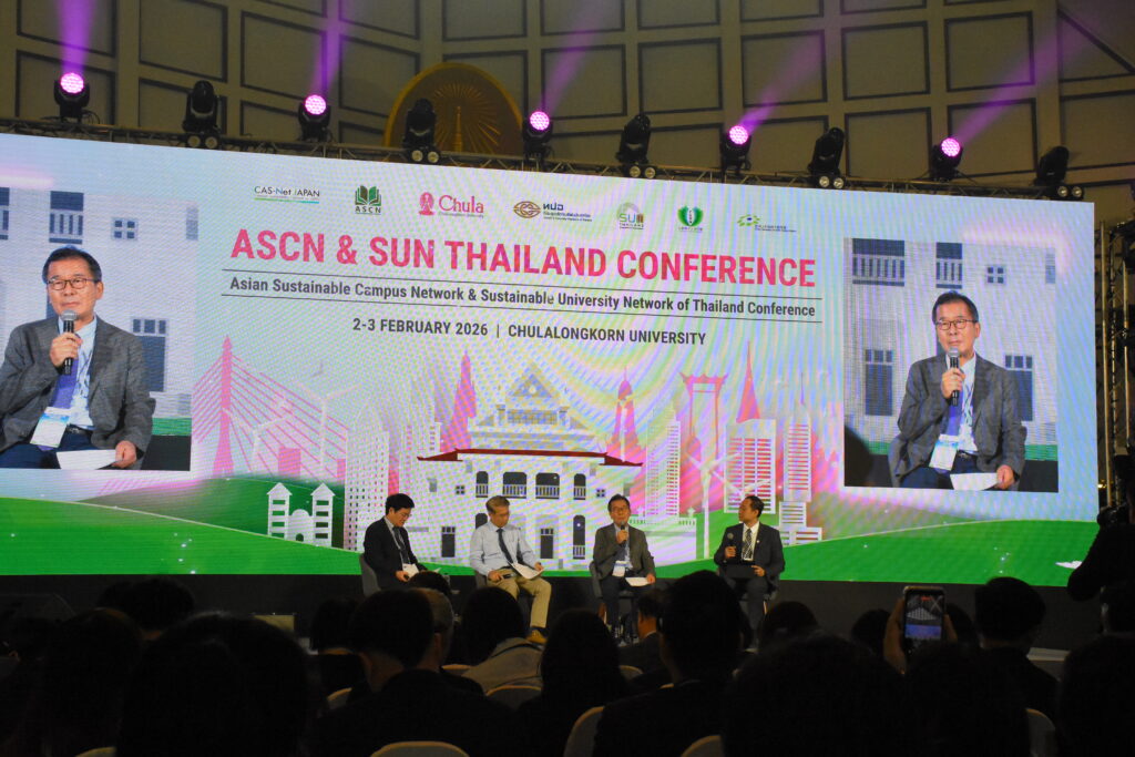 This was followed by a panel discussion featuring leaders from regional sustainability networks, including Prof. Takayuki Nakamura (CAS-Net JAPAN), Prof. Hongwei Tan (China Green University Network – CGUN), and Prof. Woo-Kyun Lee (Korean Association for Green Campus Initiative – KAGCI), moderated by Assoc. Prof. Dr. Nattapong Makaratat, Chairman of SUN Thailand.
