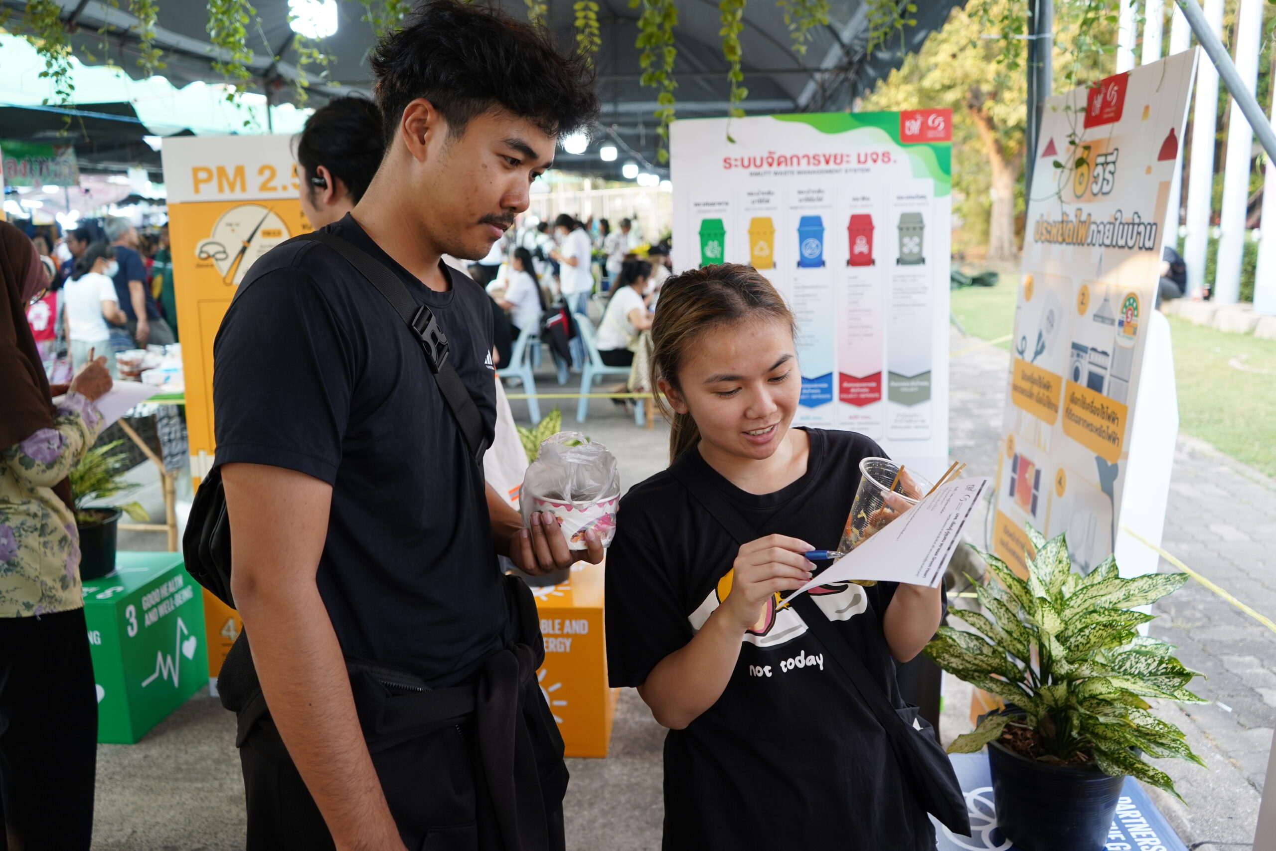 In addition to environmental knowledge, KMUTT organized recreational activities to bring year-end smiles and happiness to the local community. Interactive Q&A sessions with prizes created a vibrant and friendly atmosphere at the booth.
